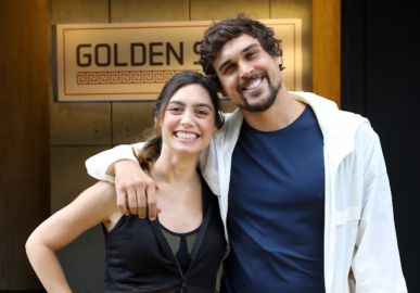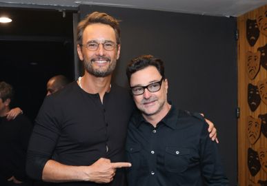 Rodrigo Santoro prestigia estreia da peça Muito pelo Contrário com Emílio Orciollo Netto